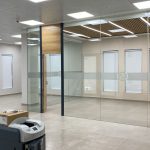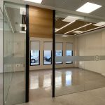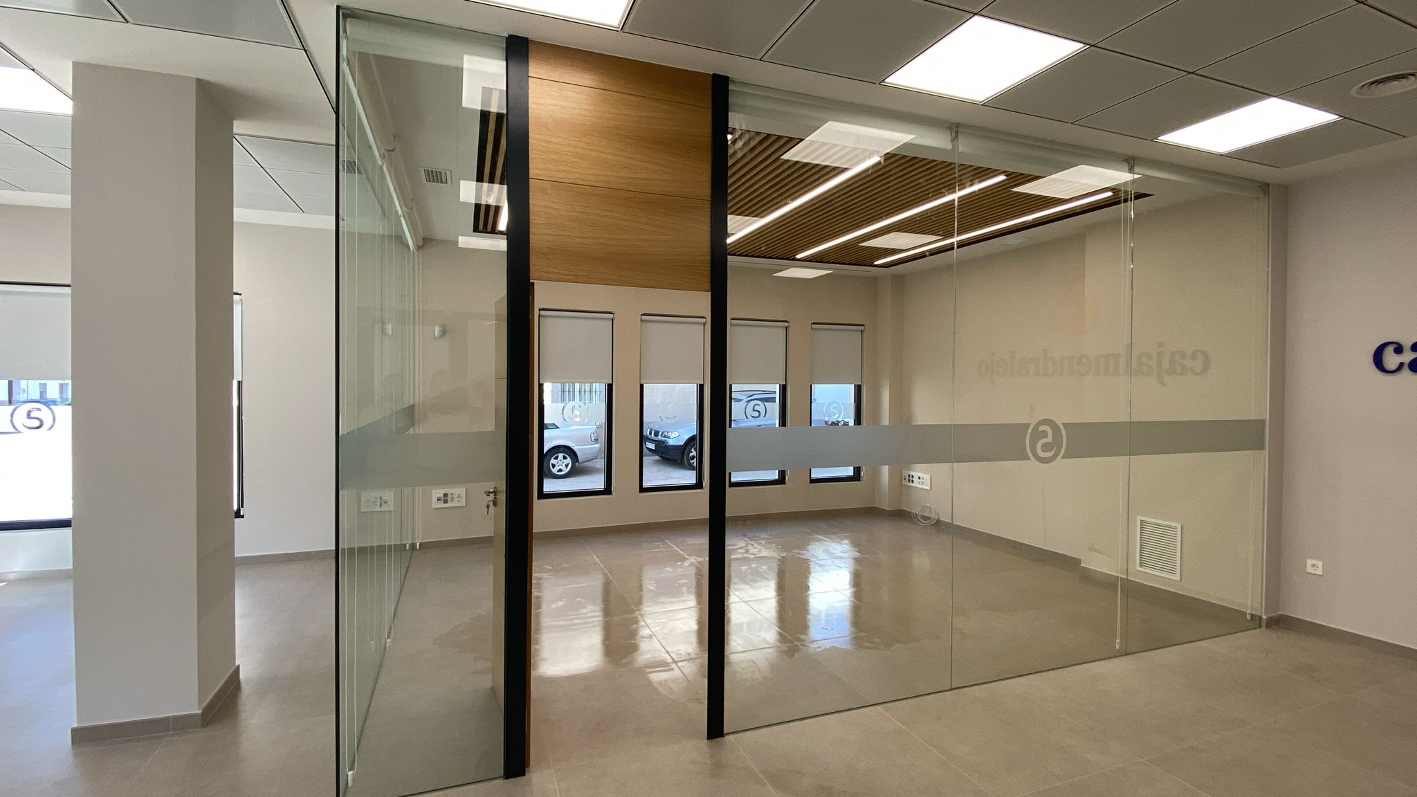 El proyecto se articula en torno a una reorganización completa de la planta, eliminando compartimentaciones innecesarias y favoreciendo una lectura diáfana del espacio. La incorporación de cerramientos acristalados permite delimitar áreas funcionales —despachos y zonas de atención personalizada— sin interrumpir la continuidad visual ni la percepción de amplitud.