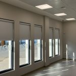El lenguaje interior combina materiales neutros y tonos cálidos para generar un ambiente profesional pero acogedor. El pavimento continuo de gran formato amplifica la sensación espacial y facilita el mantenimiento, mientras que los techos técnicos integran iluminación LED de alto rendimiento, garantizando uniformidad lumínica y control energético.